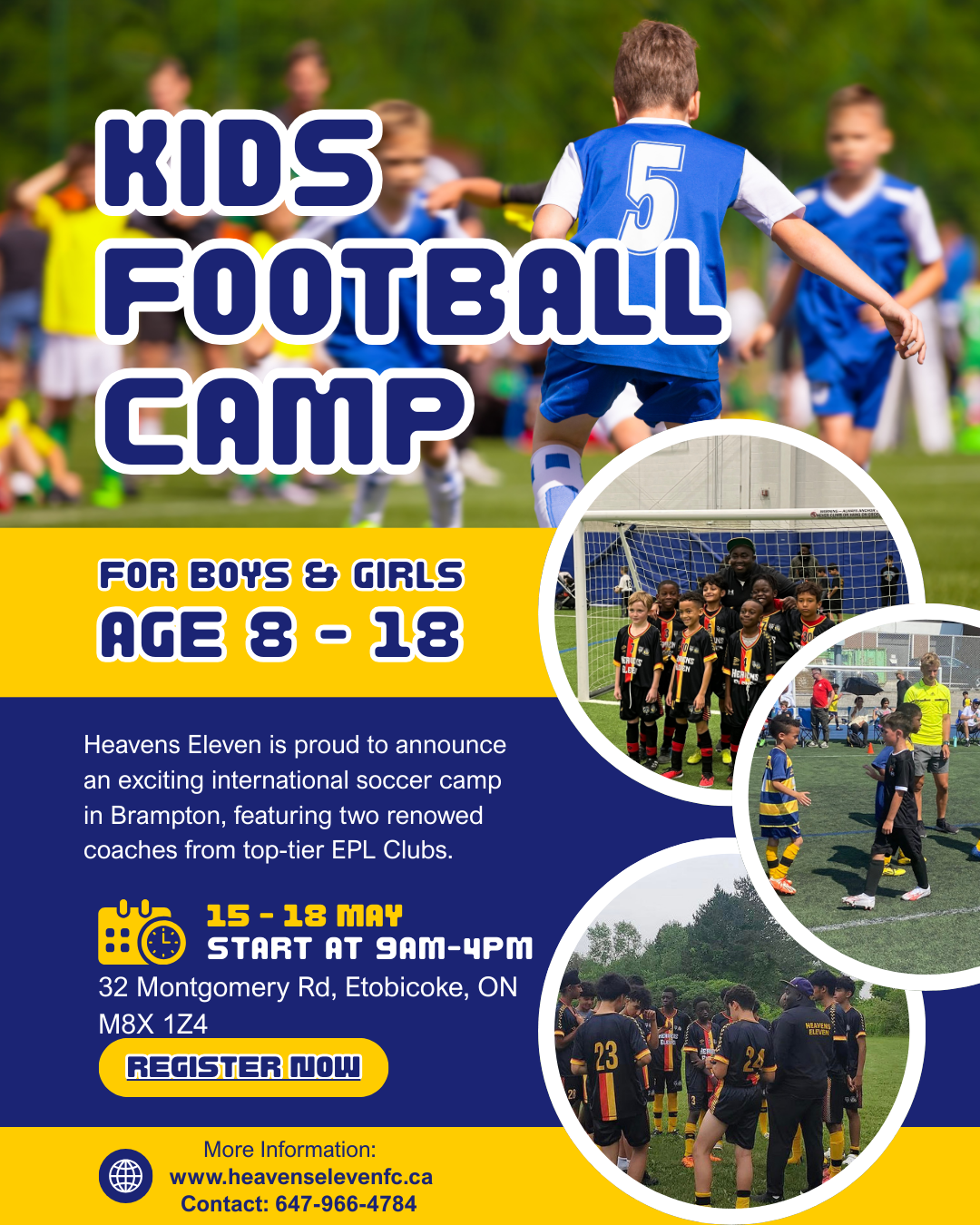 We’re excited to announce that Heavens Eleven is starting a brand-new Pre-Academy program in Brampton, Ontario! This is a fantastic opportunity for young players (ages 5, 6, and 7) to learn the fundamentals of soccer, build a strong work ethic, and begin a journey in the sport that can last a lifetime.